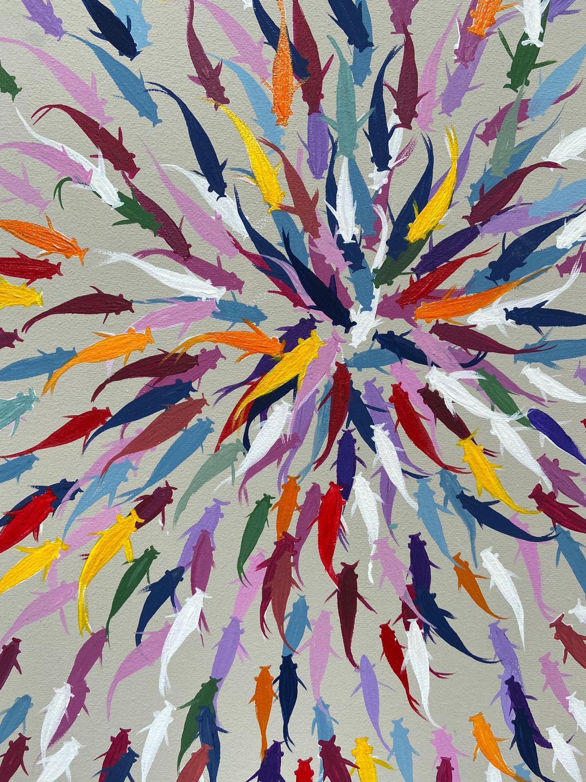 Il mio iconico pesciolino nasce in una piccola bolla, ma appena l'acqua si fa profonda — come accade sulla tela — cresce, cambia scala e sfida le correnti. Onde, riflessi e abissi si fondono in velature acriliche fluide, stratificate, vibranti di salmastro. Ogni quadro è un tuffo: dentro un'emozione, un ricordo di viaggio, un canto di sirena che invita a esplorare. Benvenuti nel mio "mare aperto".